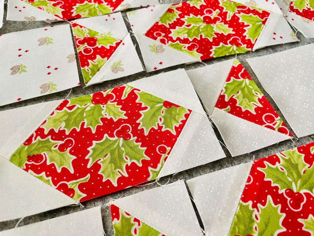 So let’s get into week 2 of the Christmastime sew along with Fat Quarter Shop! This week we will sew together their Hard Candy Christmas block. Don’t let all those little pieces scare you off. This block went together so quickly and I was done in no time at all!