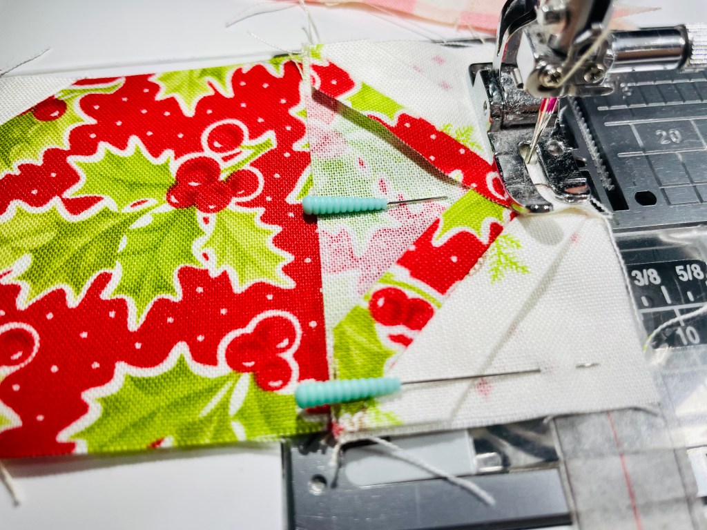 In order to complete the candy unit, you need to make sure your points match. I use magic pins to help me match my points up before sewing. My favorite magic pins are the extra fine patchwork pins.