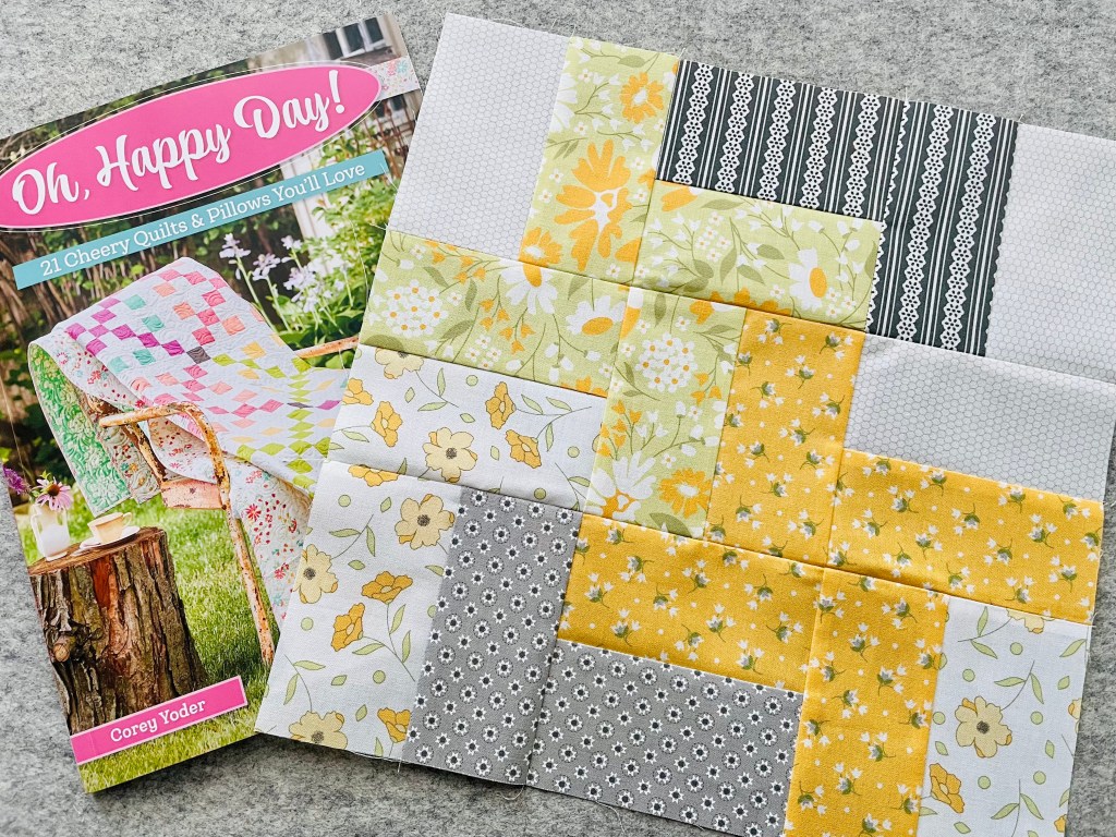 Ready for another sew along? Corey Yoder just started a new sampler sew along that uses her new book called Oh, Happy Day! I bought her newest fabric collection, Buttercup & Slate, just for this sew along and love how the first block turned out!