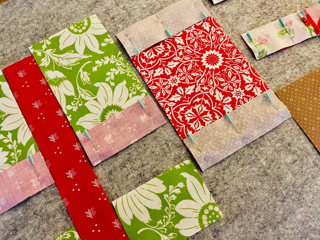 I find it is easier to keep track of all the different sized pieces by laying them out on a design board or wool pressing mat before I start sewing. It’s nice to get a general idea of what the block should look like that way.