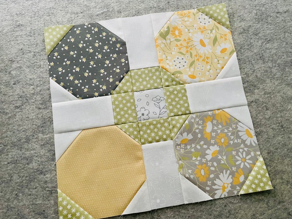 In my opinion, once the middle was done, the outer sections were easy. I did have to seam rip the middle twice before I felt like my points were right, or close enough at least. The rule I follow is if I can’t see my points are off when I step back, then it’s good enough to move on! I love how the block turned out and am even happier with my color choices.