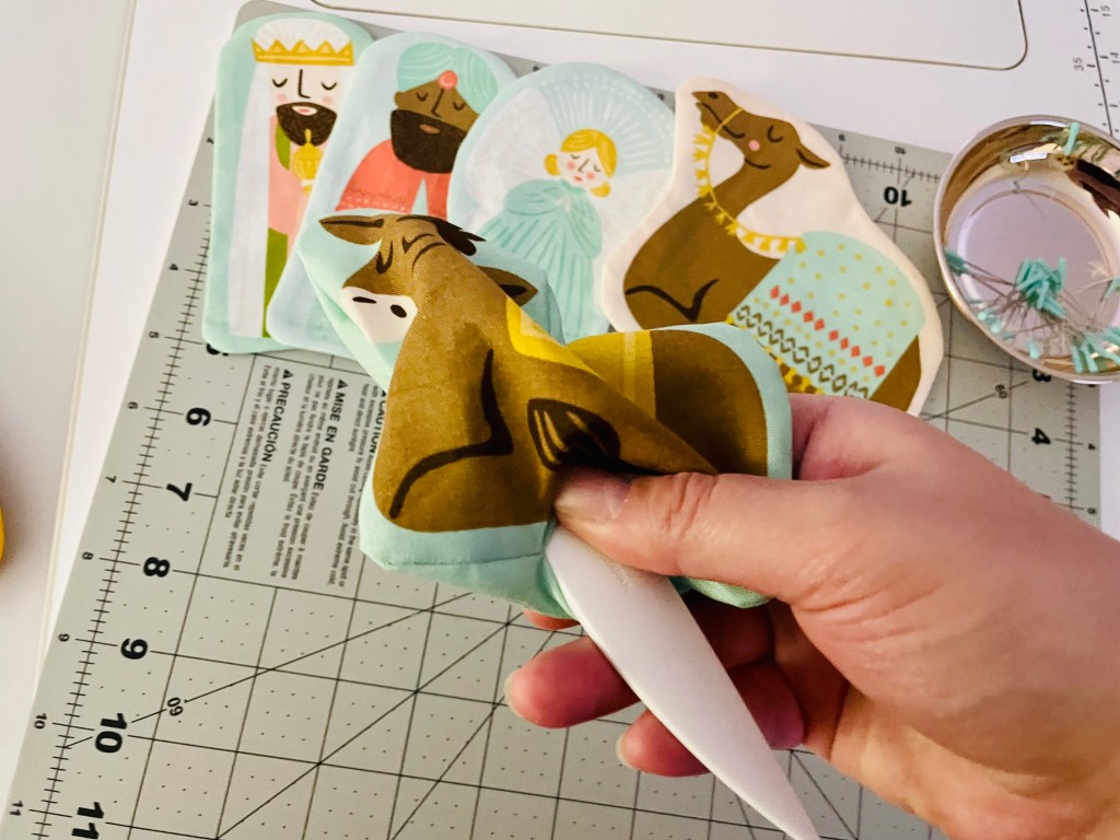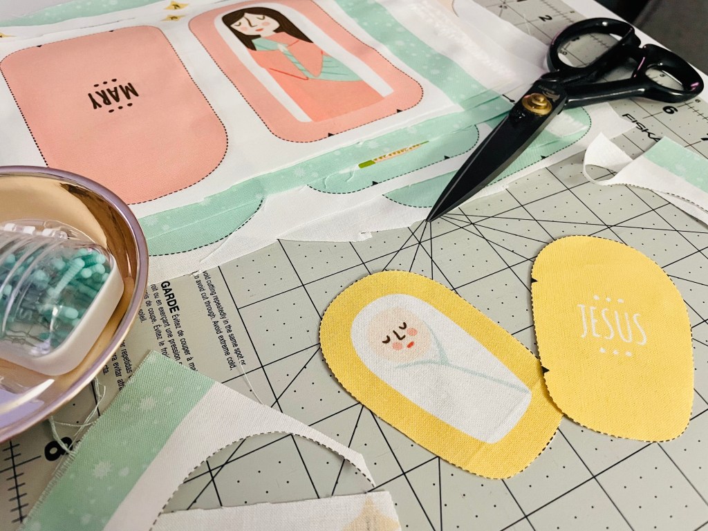 I will admit I have never done something like this before. I was super nervous to dive in, but I promised myself when I bought it that I wouldn’t let it sit in my sewing room for a year like other things have. It was a compromise with myself to justify the money I was spending on it. Then I panicked when I read the instructions on how to make this. What did I get myself into?! Stabilizer? Foam? VELCRO?! All the things I have never used before. So I started with making the nativity characters first since it was the only part of this project I felt I knew how to do.