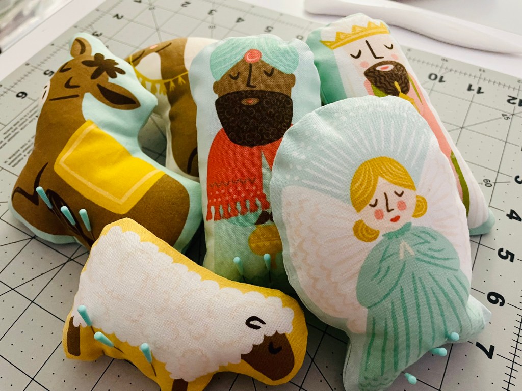 I spent one night sewing together all the characters in this project. In the next post, I will go over how to sew together the nativity barn! That’s where all the fun stuff comes into play; like using the stabilizer, velcro, and I may have had a mini panic attack at one point when I thought I ruined it. Don’t worry! Everything worked out in the end… you’ll just have to read about it in the next post! See you all then and happy sewing!