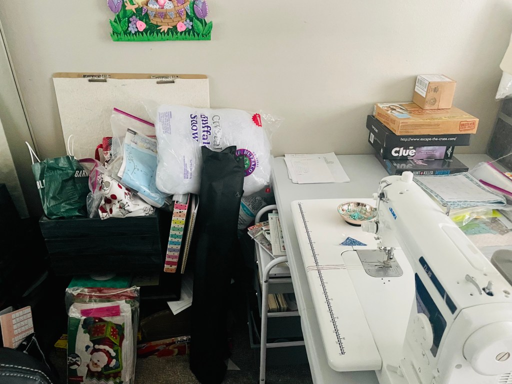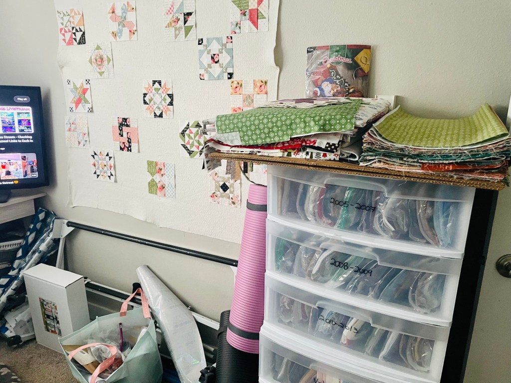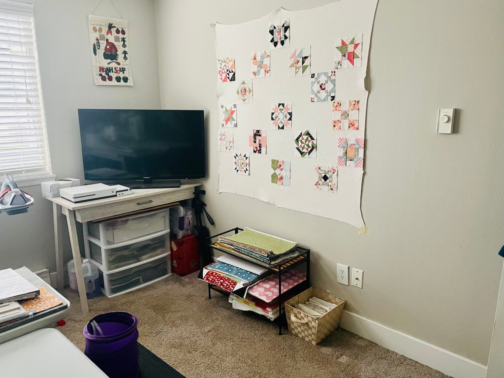You’ll also notice I cleared out that space by the closet that had all my Bucilla supplies and patterns. This will help so much when it’s time to set my Cutie Frame back up and I can actually move to quilt the way I want.