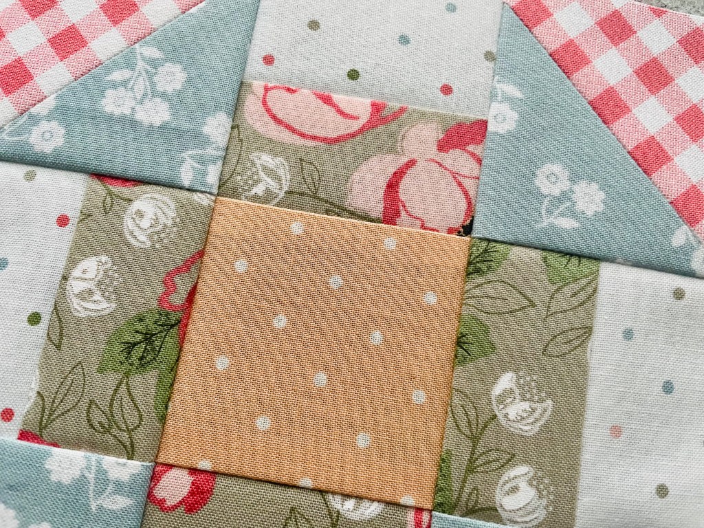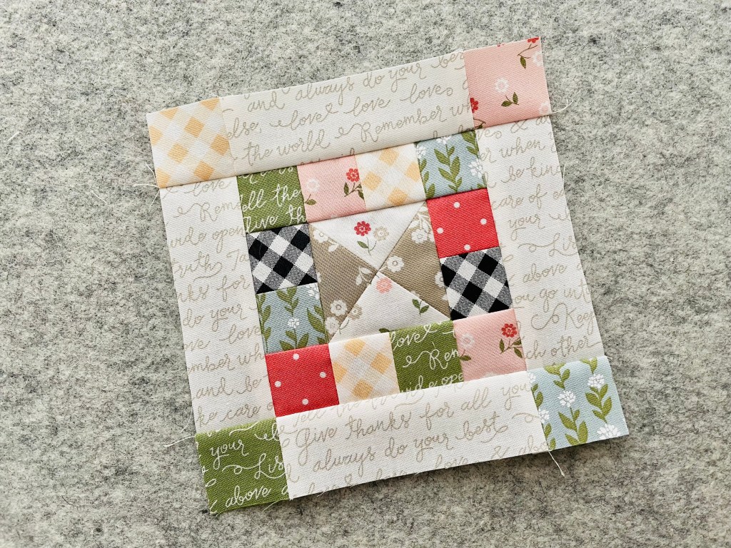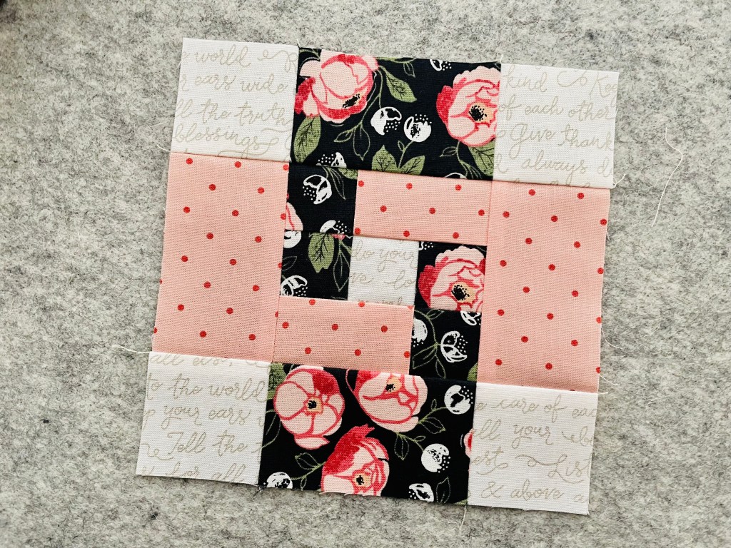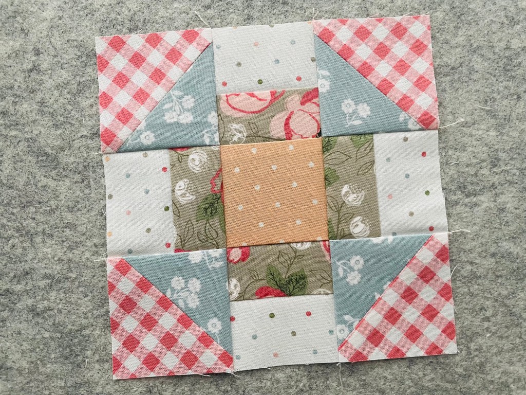 This block was definitely beginner friendly and went together rather quickly! I love how the pink gingham gives a country kitchen kind of feel to the block.