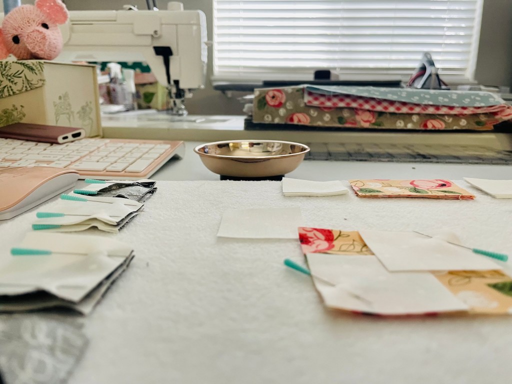 This block has the possibility to stand out too much in the quilt if the wrong fabrics are chosen. None of the other blocks I have done so far stand out too much. So I decided to choose fabrics that were a little lighter in tone by avoiding black and strong pink colors.