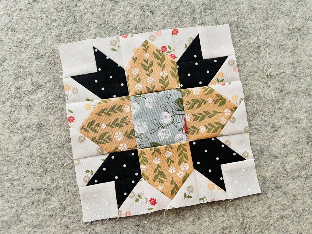 When choosing fabric, pay attention to patterns that allow you to use bigger prints. This block was perfect to let this black flowery print shine! I also paired it with my favorite dot print in this collection.