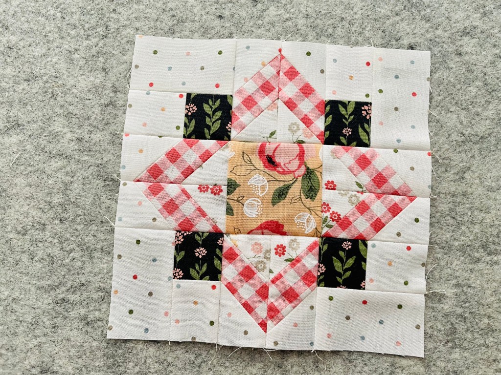 This turned out to be one of my favorite blocks of the whole sew along. I think I’m just obsessed over this red gingham fabric. It looks amazing in anything I put it in!