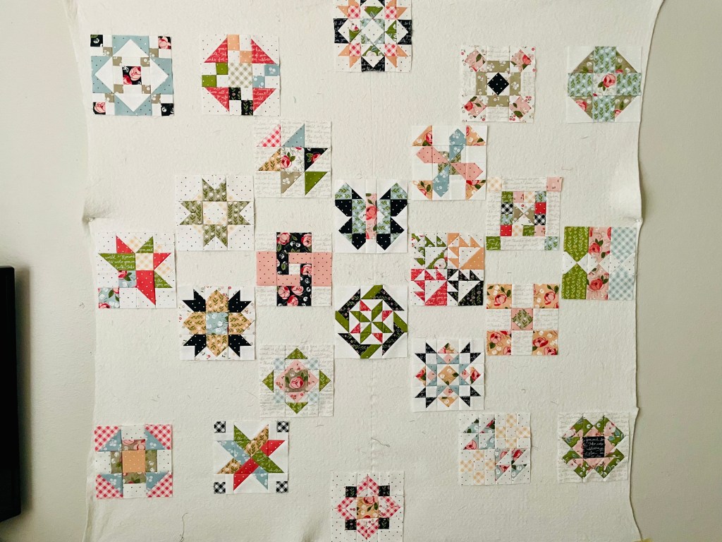 It’s time to put this quilt together! This part took me a while since I had to play with the colors on my design wall to see what I liked. I did go through different phases in order to get the end result I was looking for.