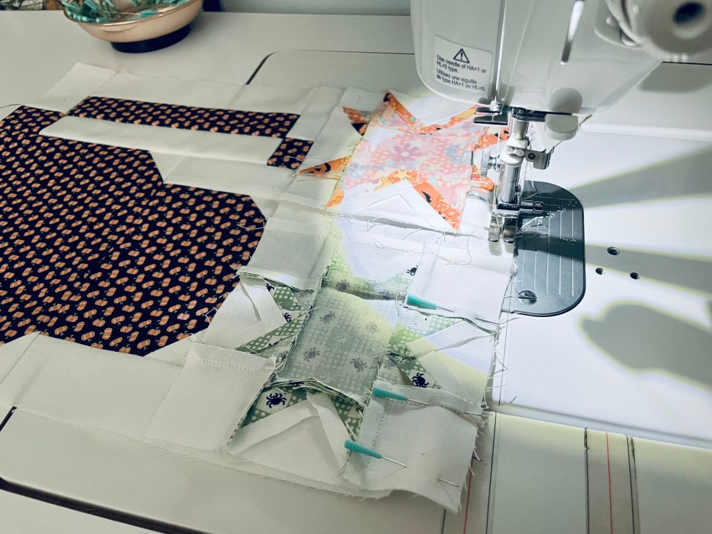 Four weeks sure goes by fast! This sew along is already complete and I am ready to show you all my Halloween quilt top! In case you missed my last post, this pattern is free from Fat Quarter Shop and they even sold kits. Grab yours before it’s too late!
