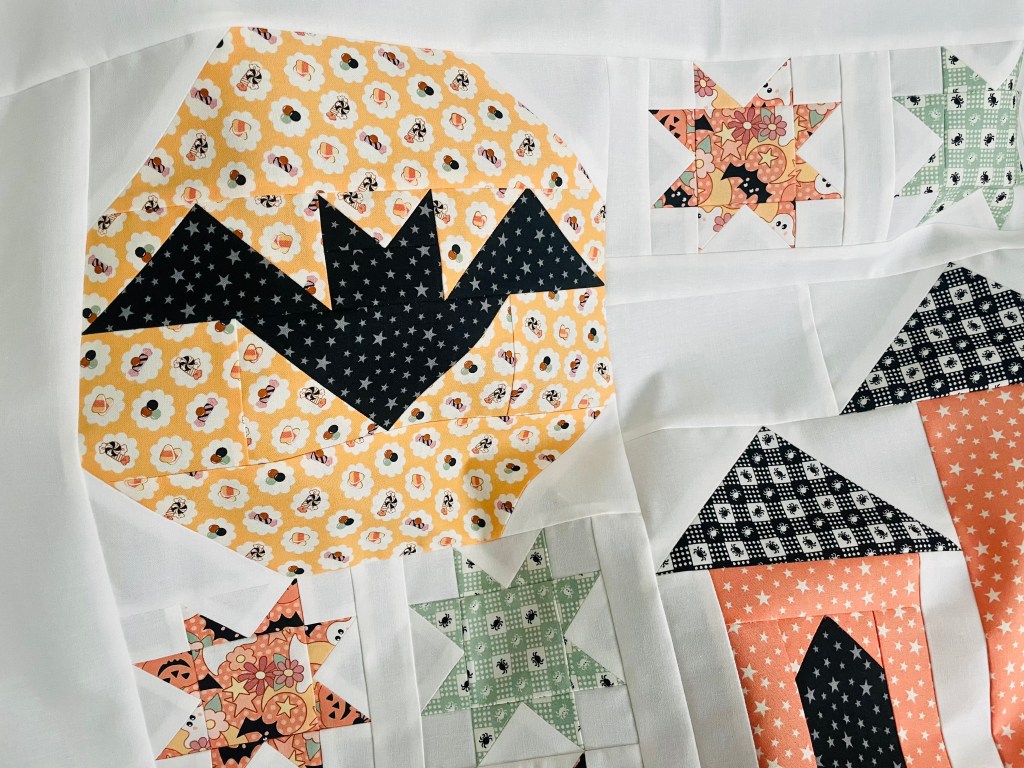 I hope you joined along in the quilt along fun! It may seem too early for Halloween, but having my top done this early gives me a chance to quilt it before October. I can’t wait to hang it up this year! Happy quilting!