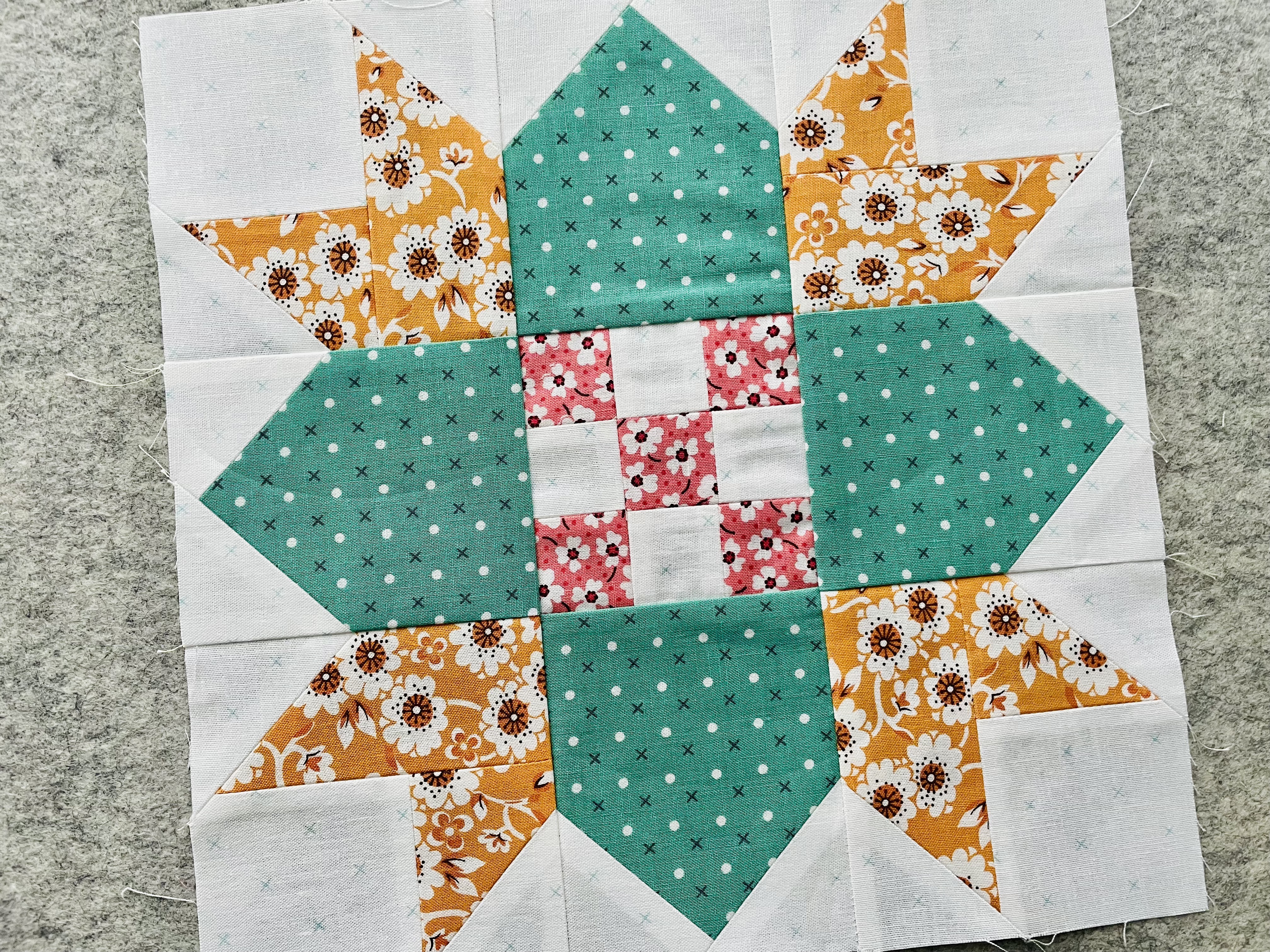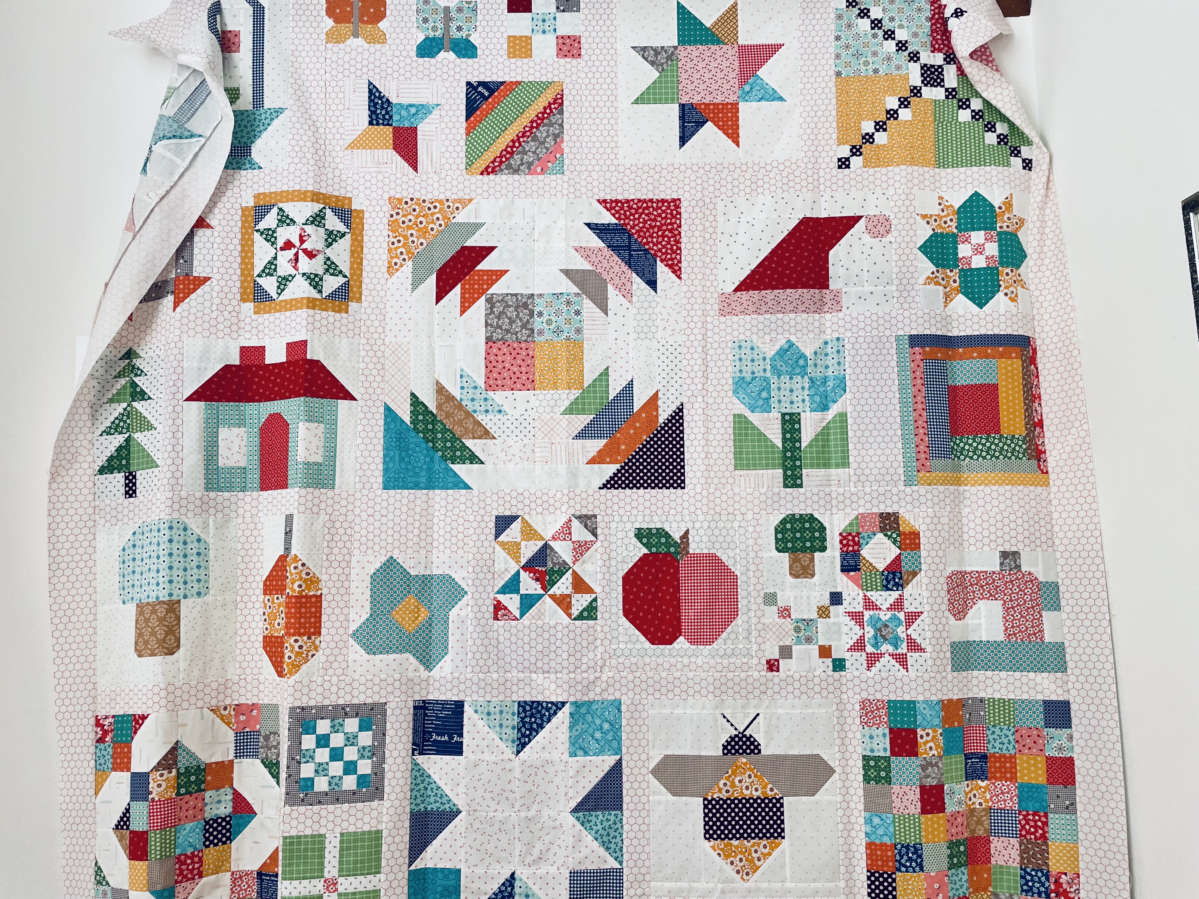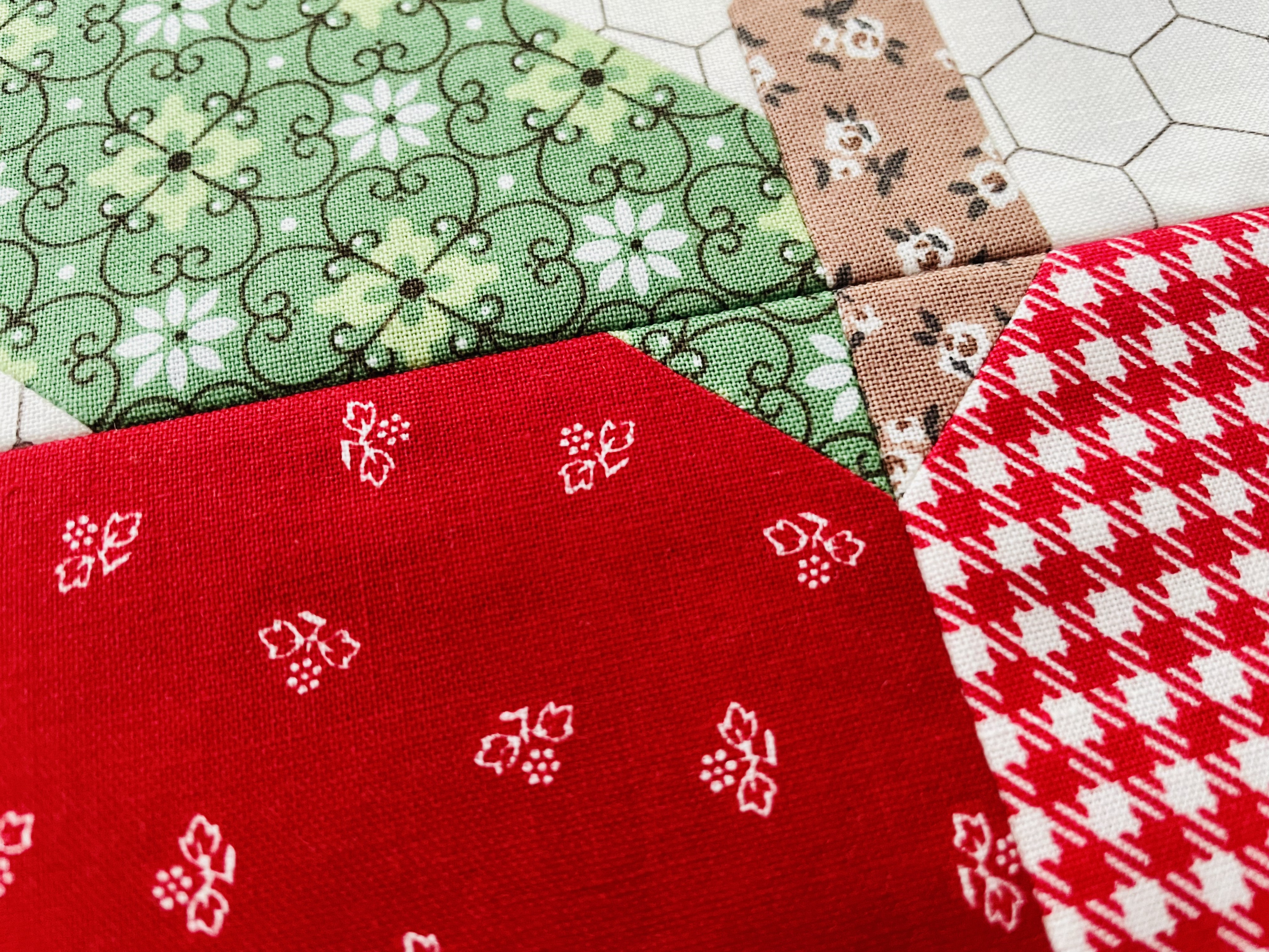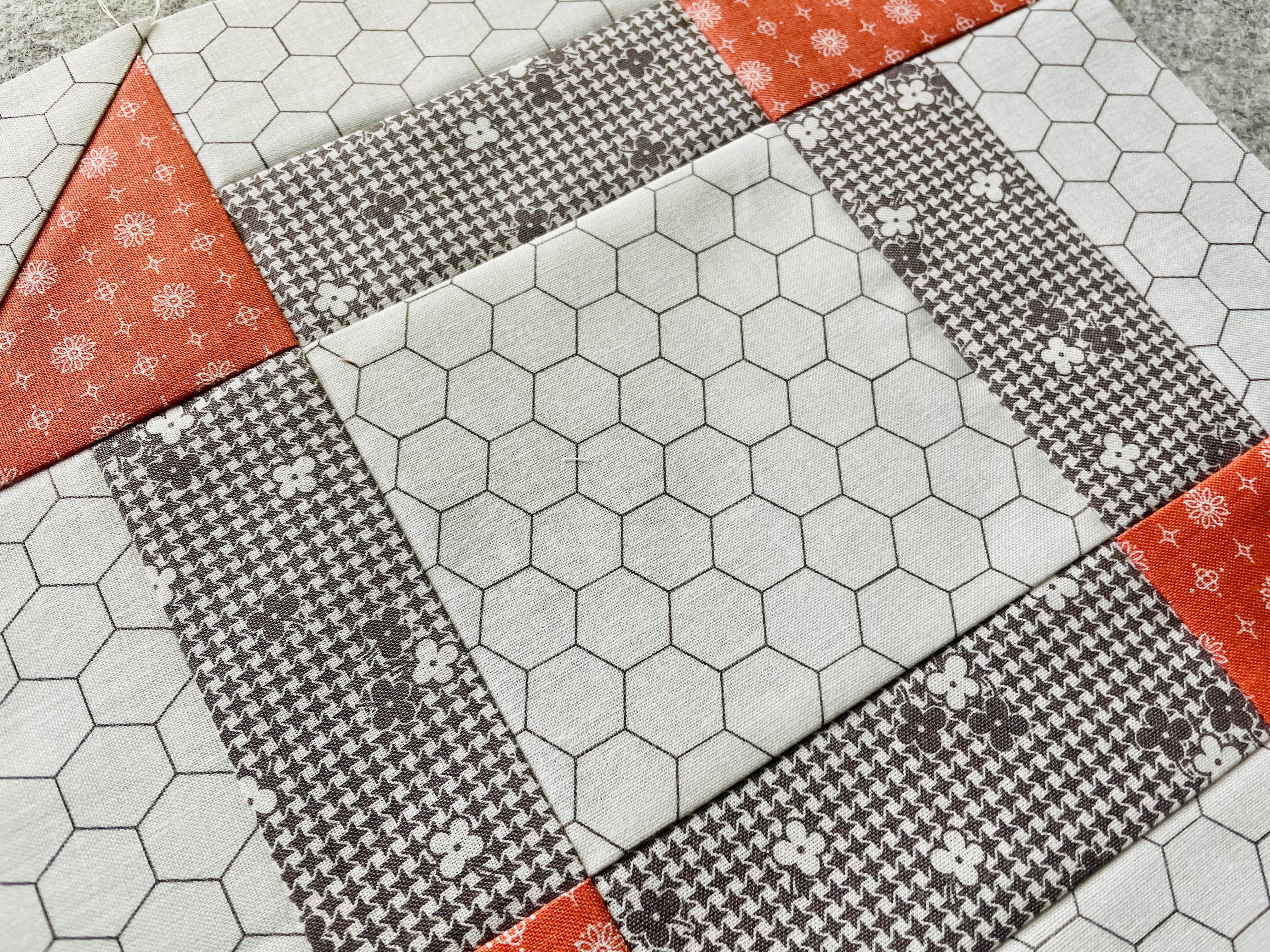 I decided to use the Bee Backgrounds Red Honey fabric by Lori Holt and it turned out amazing! I hope you enjoyed seeing the progress of this quilt come along. Thanks for reading and happy sewing!