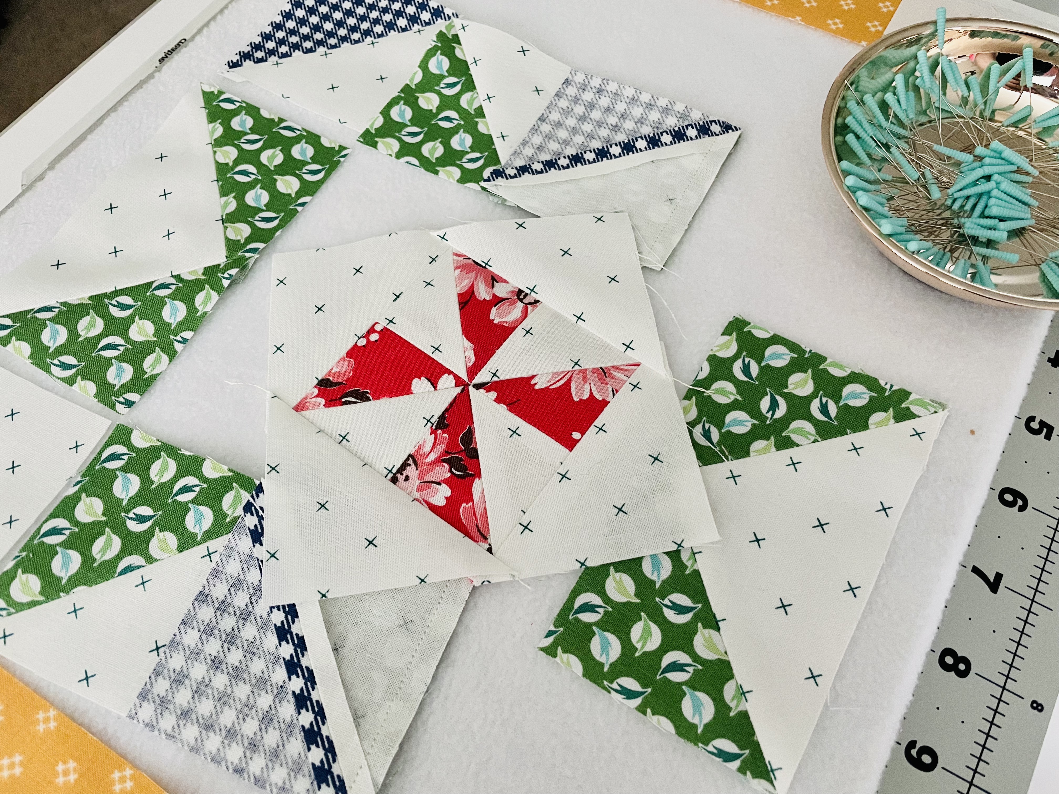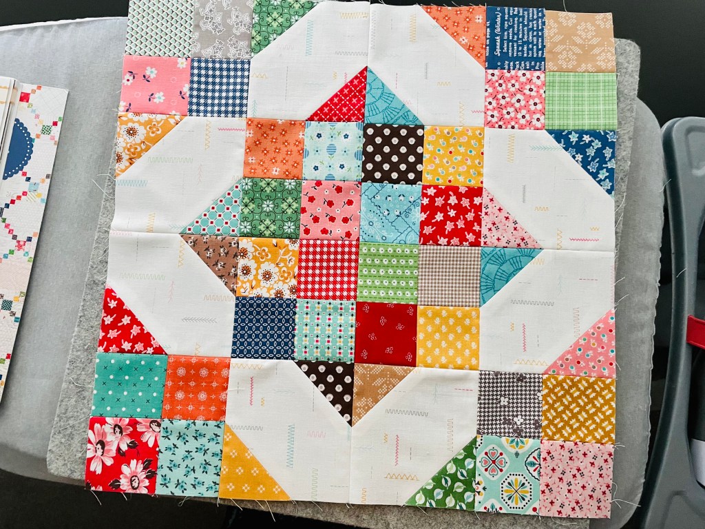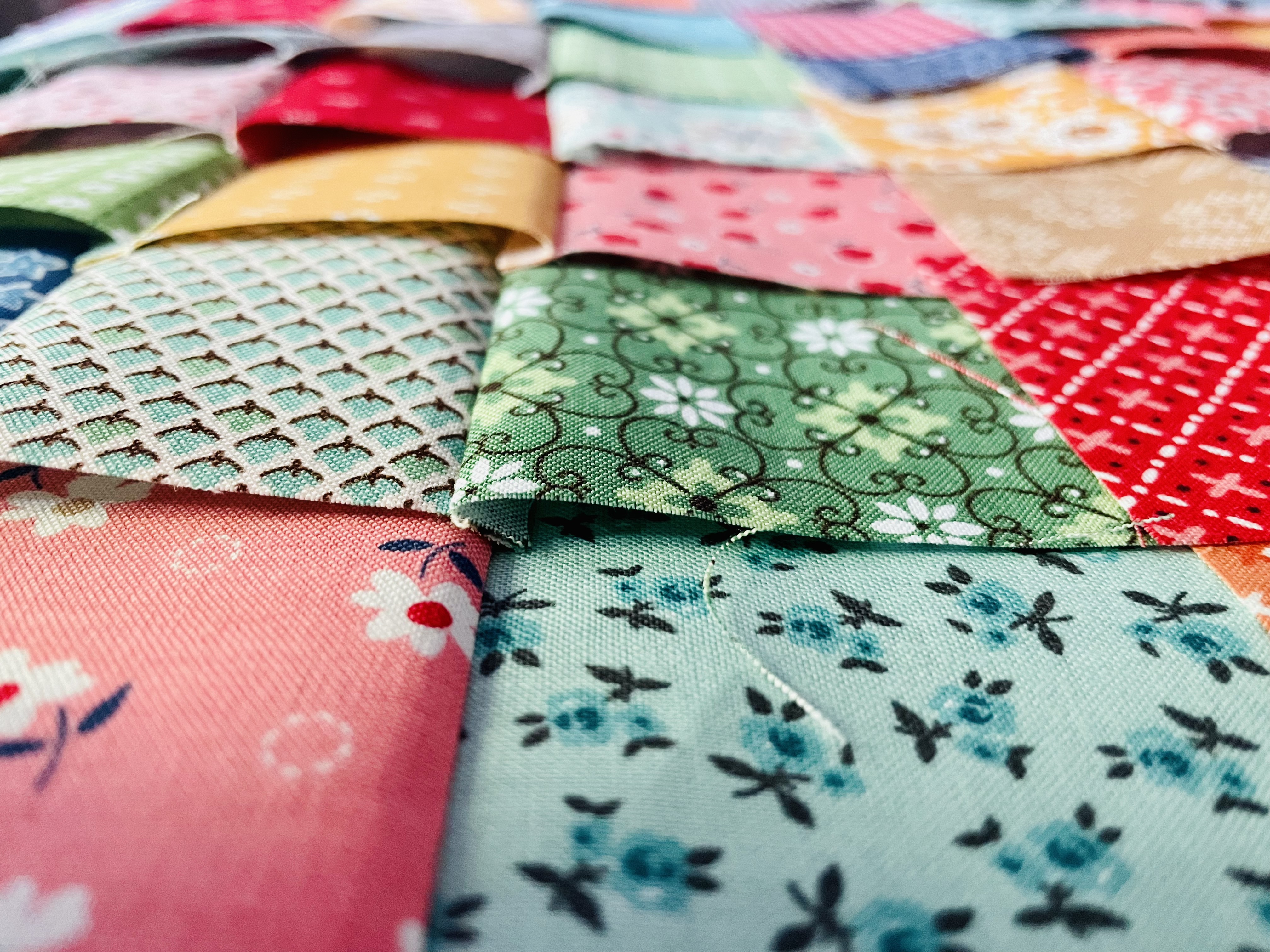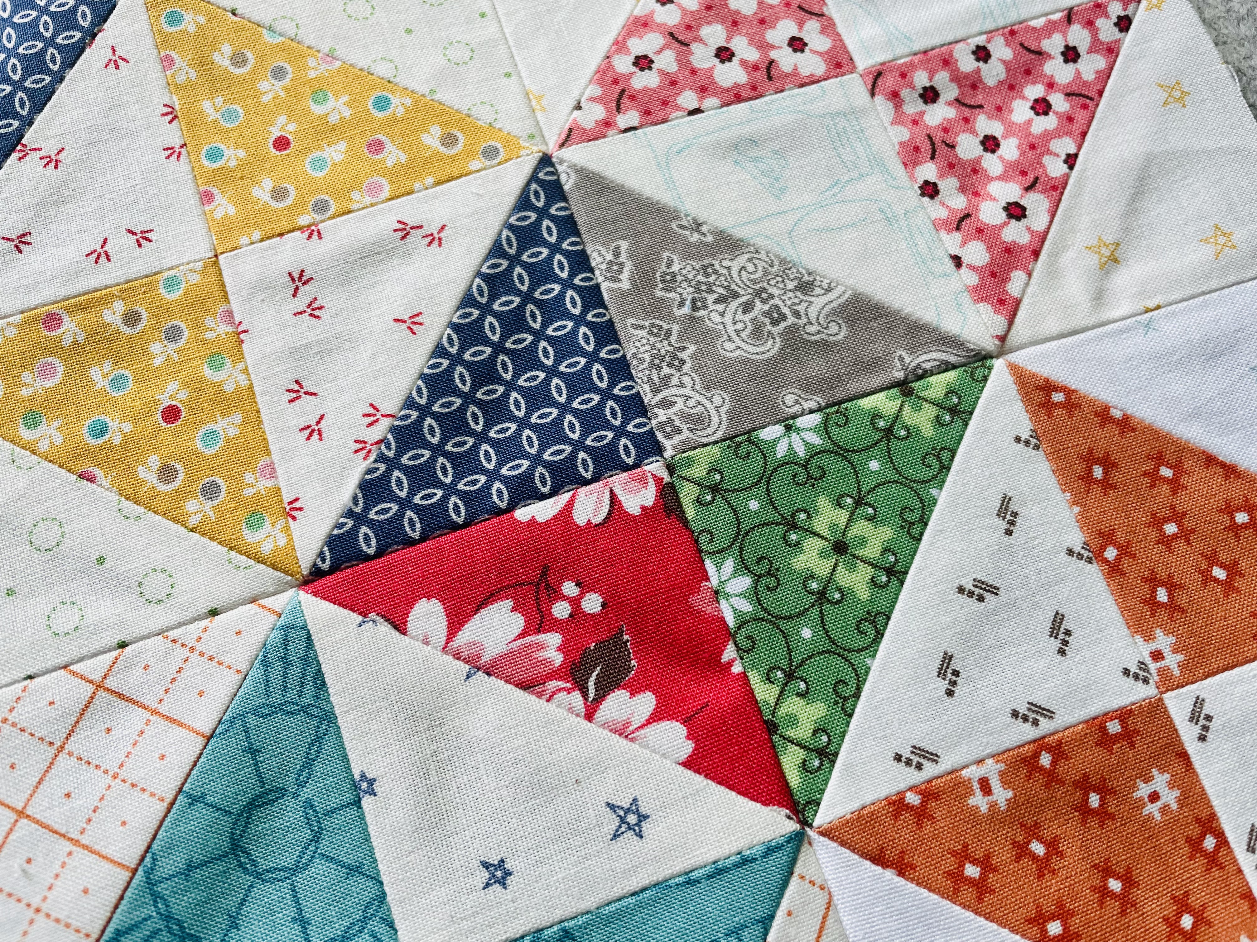 I decided to use the Bee Backgrounds Red Honey fabric by Lori Holt and it turned out amazing! I hope you enjoyed seeing the progress of this quilt come along. Thanks for reading and happy sewing!