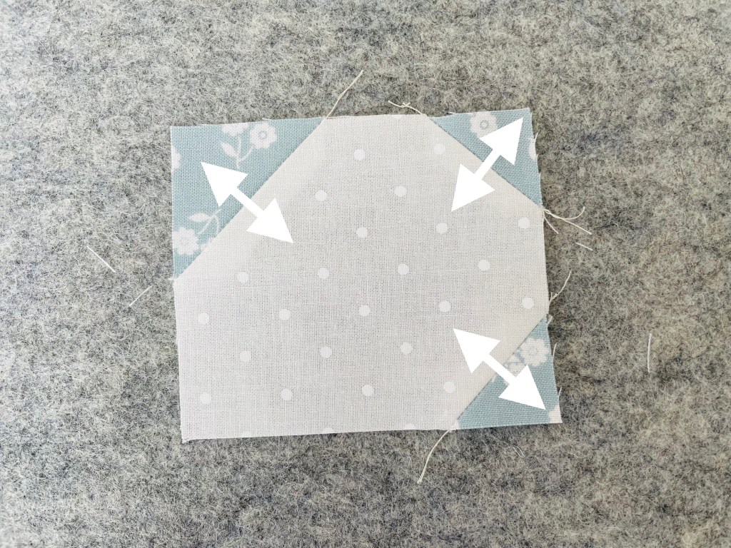 Now let’s get to the fun part! Last week I released a new pattern called Lovable that makes an adorable pet placemat. It has two easy to piece blocks that use the stitch-and-flip method. In this post I’ll show you how I pressed my blocks so you can get that flat finish we are all looking for with a finished quilt top!