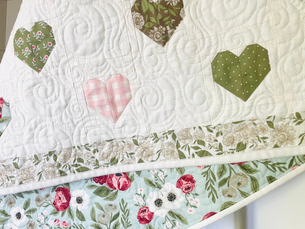This would be a great quilt to use those charm packs on! Those 5″ squares would work great for all those little hearts.