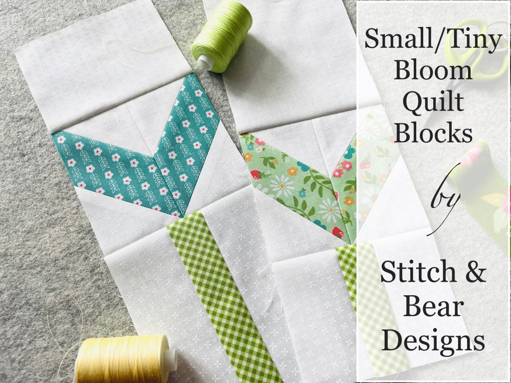 If you enjoy sewing along with me so far, check out the My Little Adventure Quilt pattern! The Small Bloom blocks and Tiny Bloom blocks fit nicely into that quilt and has plenty of other fun blocks for you to try. This pattern is available for purchase at Stitch & Bear Designs!