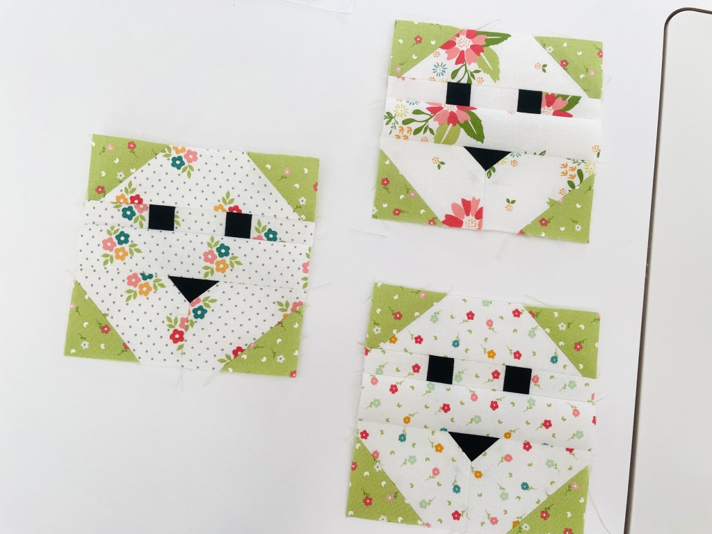 Well we better get busy and make some chubby bunnies. The Chubby Bunny block is probably the hardest block to make in the quilt, but also one of the cutest!